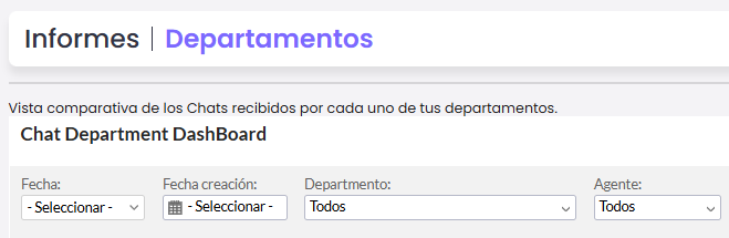 El informe de departamentos te permite acceder a todo el registro 📊 de información asociado a los departamentos en los cuales se divide tu operación. Consultando podrás saber cuáles departamentos tiene mayor actividad, cuáles agentes son los más atareados y en general como se presenta el volumen de chats en tu empresa.