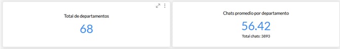 El segundo número, llamado: “Average Chats per Department '' te muestra el promedio de chats por departamento y el numero total de chats incluidos en todos los departamentos 👍 asociados a tu comercio.
